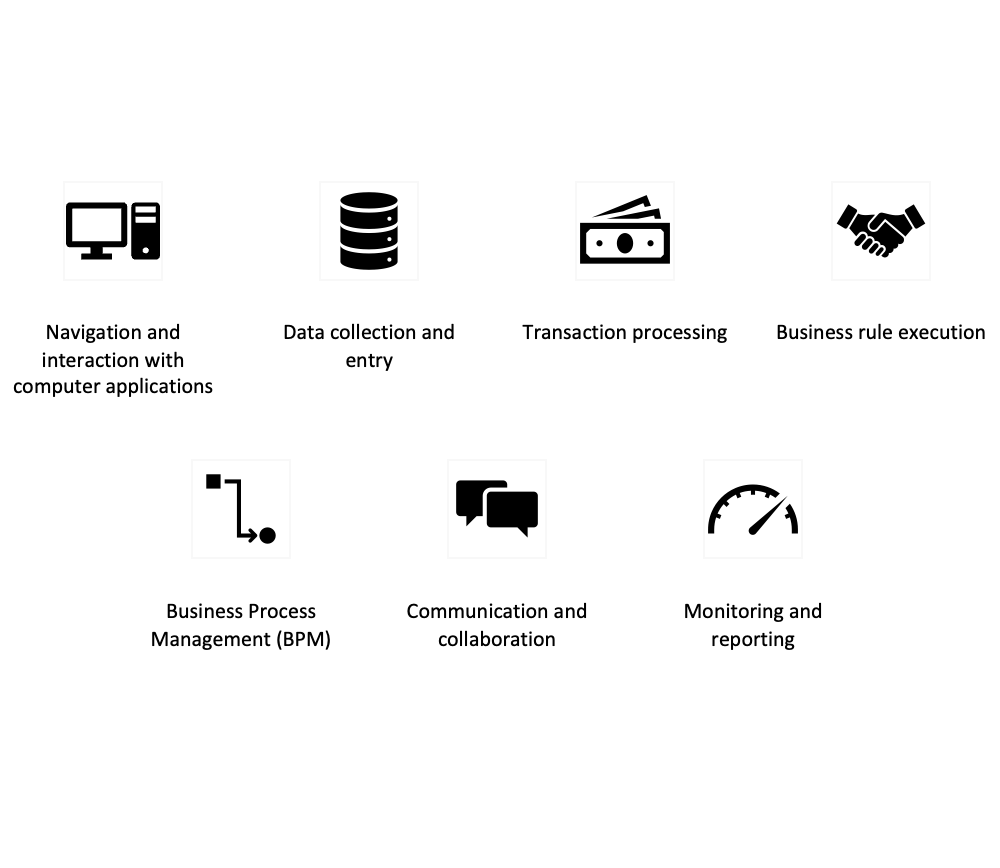 In summary, a software robot can automate a wide variety of tasks and activities in business processes, helping to improve the efficiency, accuracy and productivity of organizational operations.